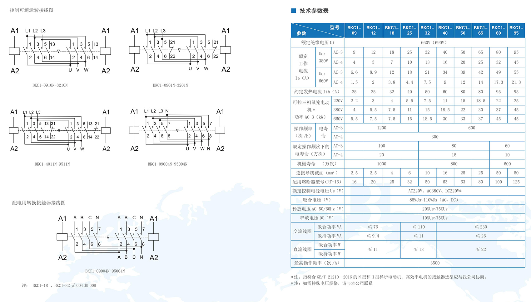 BKC1-09~95系列交流接触器,主要用于交流50Hz(或60Hz),额定绝缘电压为690V,在AC-3使用类别下额定工作电压为380V时额定工作电流为9A~95A的电路中,供远距离接通与分断电路及频繁起动、控制交流电动机;并可与适当的热过载继电器组成电磁起动器,以保护可能发生过负荷的电路。产品符合标准:IEC 60947-4,GB/T 14048.4,IEC 60947-5,GB/T 14048.5