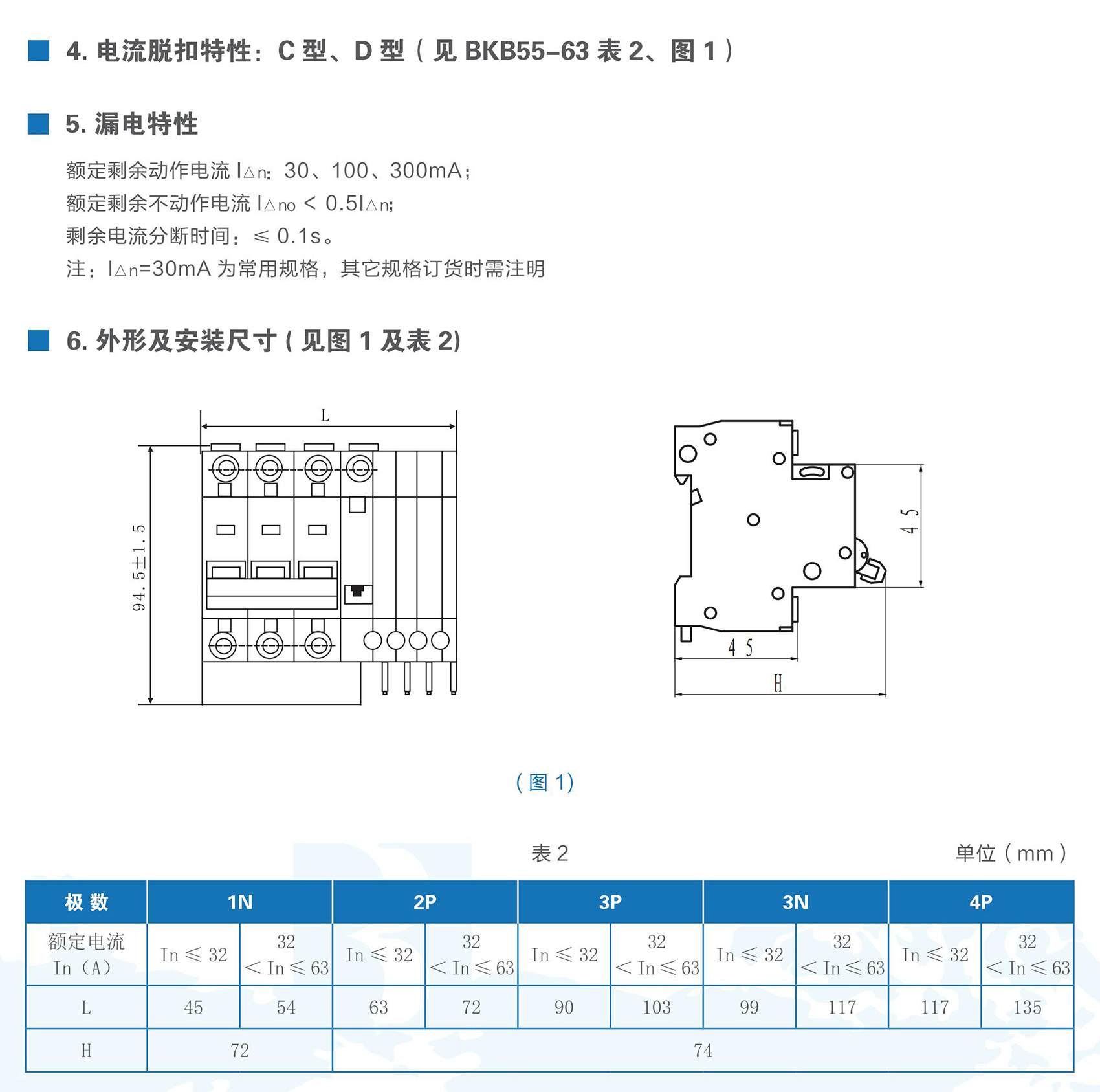 BKB55L-63系列带剩余电流保护小型断路器适用于交流50/60Hz、额定电压至400V,额定电流6~63A 的线路中。作为人身触电和设备漏电保护之用,并可用于线路和电气设备的过载以及短路保护。在正常情况下亦可用于不频繁的通断操作。本产品符合GB/T 16917.1、IEC 61009-1标准。